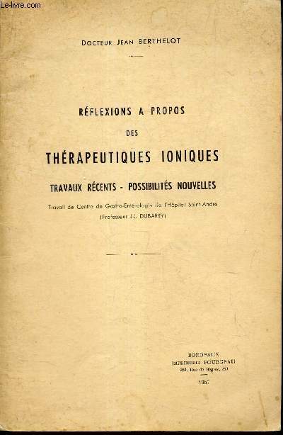 Imprimerie fourgeau - bordeaux. 1957. In-8. Broché. Etat d'usage, Tâchée, Dos satisfaisant, Intérieur frais. 51 pages - + 2 figures e nnoir et blanc hors texte + 1 planche depliante.. . . . Classification Dewey : 610-Sciences médicales. Médecine