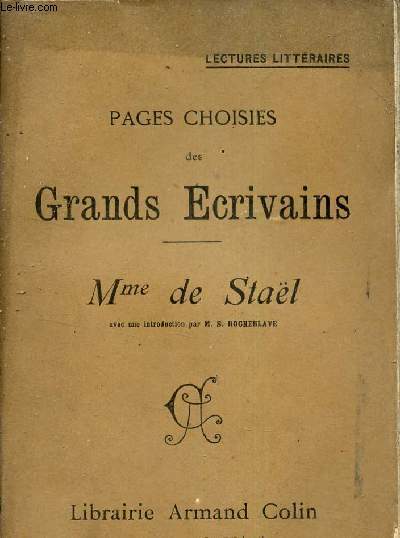 ARMAND COLIN. 1910. In-12. Broché. Etat d'usage, Couv. légèrement passée, Dos satisfaisant, Quelques rousseurs. LXI + 340 pages - quelques rousseurs à l'intérieur de l'ouvrage sans conséquence sur la lecture.. . . . Classification Dewey : 840.08-XIX ème siècle