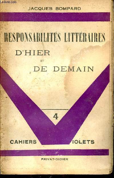 Privat Didier. 1943. In-12. Broché. Etat passable, Tâchée, Manque en coiffe de tête, Mouillures. 95 pages - mouillures sur les plats - papier jauni - pages non coupées - mouillures à l'intérieur de l'ouvrage sans réelle conséquence sur la lecture.. . . . Classification Dewey : 300-SCIENCES SOCIALES