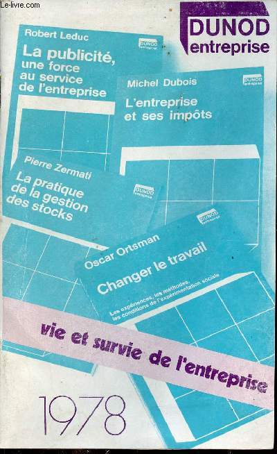 Dunod entreprise. 1978. In-12. Broché. Etat d'usage, Couv. convenable, Agraffes rouillées, Intérieur frais. 44 pages agrafées.. . . . Classification Dewey : 56-Catalogue