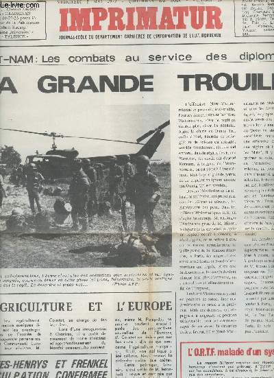 Sommaire : Viet-Nam les combats au service des diplomates la grande trouille - l'agriculture et l'Europe - Rives-Henrys et Frenkel inculpation confirmée - l'ortf malade d'un système - portes ouvertes 72 - à travers la presse du matin - Golda Meir à Bucarest . Classification Dewey : 70.1-Journaux