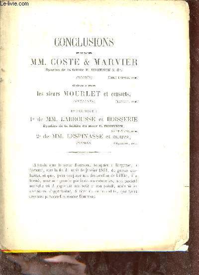 Imprimerie Générale d'Emile Crugy. non daté. In-4. En feuillets. Etat passable, Livré sans Couverture, Dos abîmé, Intérieur acceptable. 12 pages - livré sans couverture - dos absent.. . . . Classification Dewey : 340-Droit