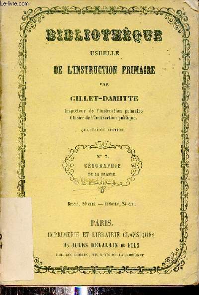 Jules Delalain et Fils. non daté. In-12. Broché. Etat d'usage, Couv. légèrement passée, Dos satisfaisant, Mouillures. 48 pages - mouillures et rousseurs à l'intérieur de l'ouvrage sans réelle conséquence sur la lecture - tampon et annotation sur la page 1 - étiquette collée sur la coiffe en pied et sur les plats.. . . . Classification Dewey : 372.89-Livre scolaire : histoire / géographie