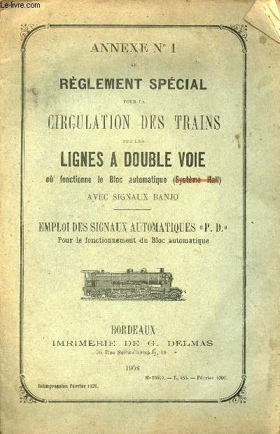 "Imprimerie de G.Delmas. 1926. In-8. Broché. Etat d'usage, Tâchée, Dos satisfaisant, Intérieur acceptable. 8 pages + 1 document en feuillet de 2 pages ""chemins de fer du midi"" - quelques illustrations en couleurs dans le texte.. . . . Classification Dewey : 625-Chemins de fer, routes, autoroutes"