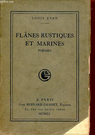 Bernard Grasset. 1911. In-12. Broché. Etat d'usage, 1er plat abîmé, Coiffe en pied abîmée, Quelques rousseurs. 240 pages - coin en pied absent sur le 1er plat.. . . . Classification Dewey : 841-Poésie