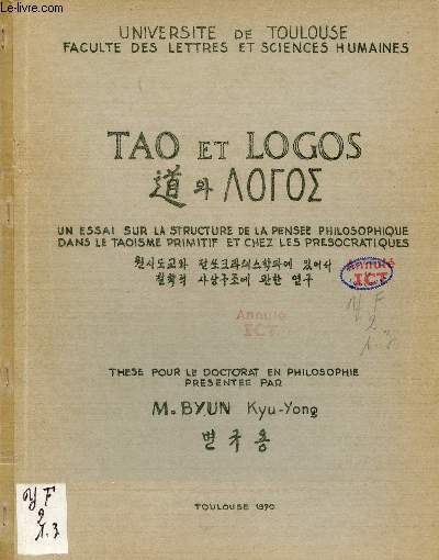 Université de Toulouse. 1970. In-4. Broché. Bon état, Couv. convenable, Dos satisfaisant, Intérieur frais. 15 pages - tampons + étiquette collée sur le 1er plat.. . . . Classification Dewey : 180-Philosophie antique, médiévale, orientale
