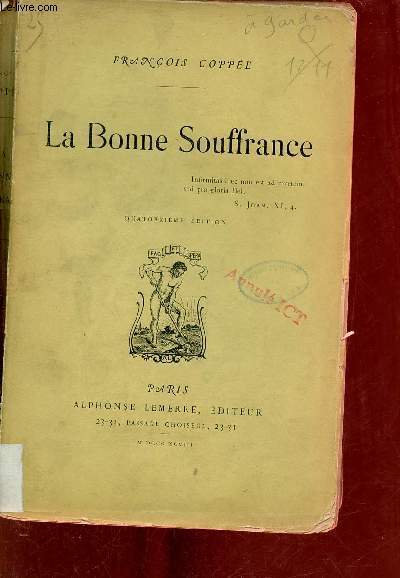 Alphonse Lemerre. 1898. In-12. Broché. Etat passable, Couv. légèrement passée, Dos abîmé, Intérieur acceptable. 266 pages - tampons sur le 1er plat - dos partiellement absent - étiquette collée sur la coiffe en pied - tampon sur la page de faux titre - tampons + annotation sur la page de titre.. . . . Classification Dewey : 840.08-XIX ème siècle