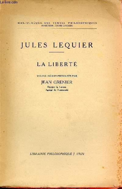 Librairie philosophique J.Vrin. 1936. In-8. Broché. Etat d'usage, Couv. légèrement passée, Dos satisfaisant, Papier jauni. 163 pages - pages non coupées - planche en noir et blanc en frontispice.. . . . Classification Dewey : 100-PHILOSOPHIE ET DISCIPLINES CONNEXES