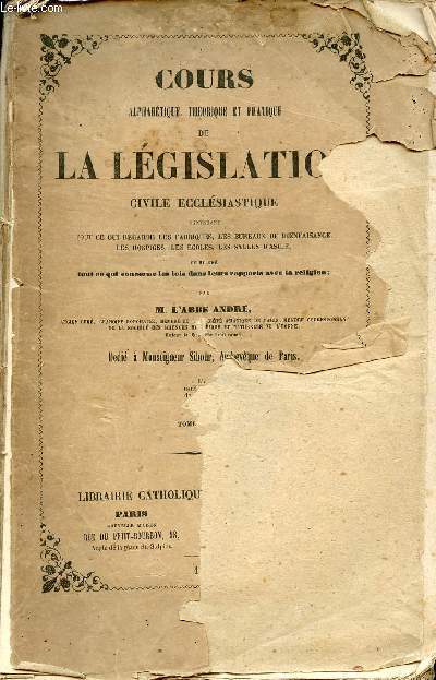 Périsse Frères. 1850. In-8. Broché. Etat passable, 1er plat abîmé, Dos abîmé, Quelques rousseurs. 558 pages - dos abîmé, ouvrage désolidarisé - 2ème plat absent - manque sur le 1er plat - quelques rousseurs à l'intérieur de l'ouvrage sans réelle conséquence sur la lecture - tampon sur la page de titre.. . . . Classification Dewey : 346-Droit privé, civil