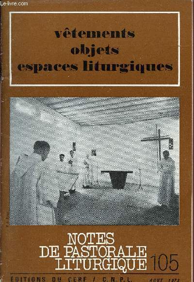 Sommaire : Les vêtements liturgiques - l'autel - les coupes et les plats - les images - l'espace et son aménagement - a quoi pense un décorateur ? - deux lieux importants - problèmes administratifs - du 21e au 29e dimanche du temps ordinaire - qui es tu ? le monde à l'envers - etre avec toi fidélité - le psautier français - missel de la semaine - le nouveau testament. Classification Dewey : 260-Théologie sociale chrétienne