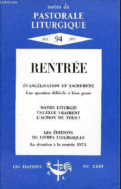 Sommaire : Notre liturgie est-elle vraiment l'action de tous ? - évangélisation et sacrement - comment rater à coup sur une assemblée - matériaux pour l'homélie - où en sont les éditions de livres liturgiques ? - chantera la messe - une célébration pour la reprise de l'année. Classification Dewey : 260-Théologie sociale chrétienne