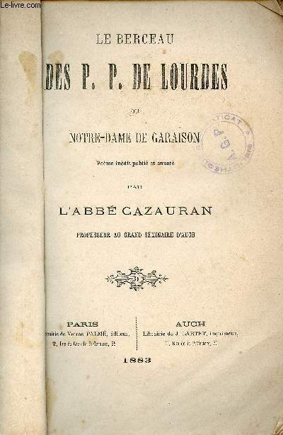 Victor Palmé - J.Lartet. 1883. In-8. Broché. Etat passable, Livré sans Couverture, Dos abîmé, Rousseurs. 325 pages - dos absent - plats absents - ouvrage livré sans couverture - ouvrage désolidarisé - papier jauni - tampon sur la page de titre - rousseurs à l'intérieur de l'ouvrage sans réelle conséquence sur la lecture.. . . . Classification Dewey : 200-RELIGION