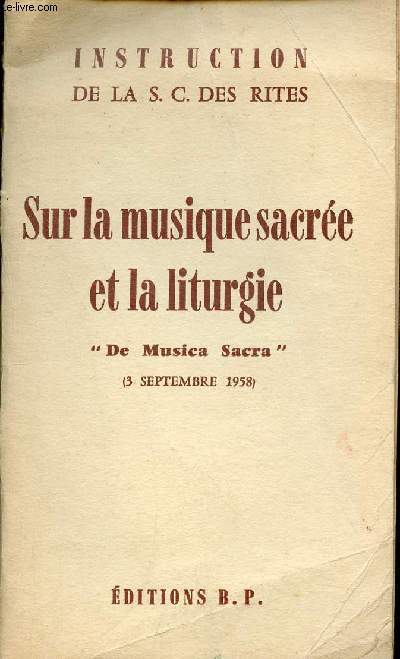 Editions B.P.. 1958. In-12. Broché. Etat d'usage, Couv. légèrement pliée, Agraffes rouillées, Papier jauni. 60 pages agrafées - tampon sur la page de garde.. . . . Classification Dewey : 264.2-Musiques et chants, hommage à Dieu