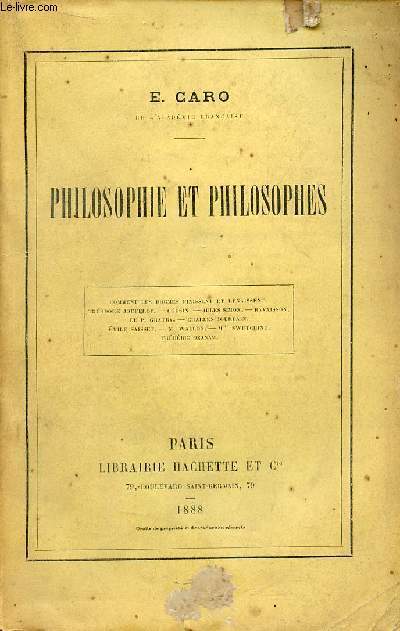 Hachette et cie. 1888. In-12. Broché. Etat d'usage, Couv. défraîchie, Dos abîmé, Rousseurs. 422 pages - rousseurs et salissures sur les plats - coiffe en tête abîmée.. . . . Classification Dewey : 100-PHILOSOPHIE ET DISCIPLINES CONNEXES