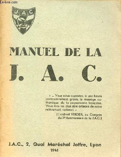 J.A.C.. 1941. In-12. Broché. Etat d'usage, Couv. convenable, Dos satisfaisant, Papier jauni. 127 pages.. . . . Classification Dewey : 200-RELIGION