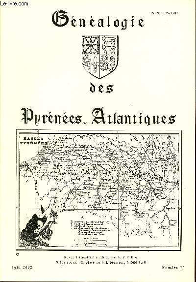 Sommaire : Nouvelles la série J (suite) - études en Basse Navarre - au hasard de l'état civil des Pyrénées Atlantiques Anoye Arance - listes d'actes notariés concernant des migrations - les Irigoin de Saint Just-Ibarre - compte rendu de l'assemblée générale du CGPA pour l'année 2001. Classification Dewey : 929-Généalogie
