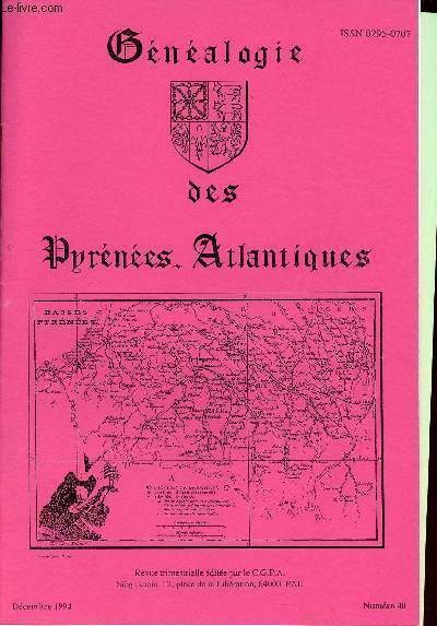 Sommaire : Rites et pratiques de fécondité en Béarn - au hasard de l'état civil des Pyrénées Atlantiques (suite) - communiqué - les maisons Aguerre et Argoitz à Saint Martin d'Arberoue. Classification Dewey : 929-Généalogie