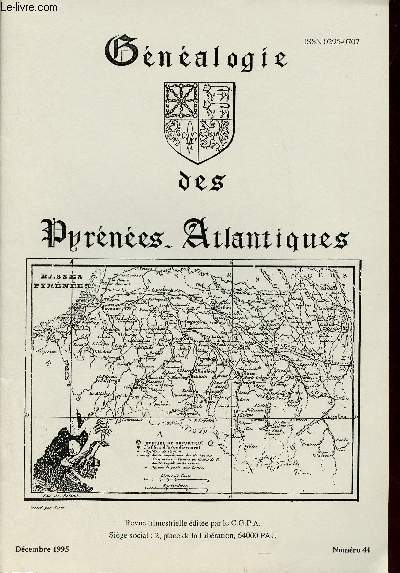 Sommaire : Les enfants illégitimes un problème en généalogie - au hasard de l'état civil des Pyrénées Atlantiques - liste Texier - Aydius en Aspe au XVIIIe s. sommaire et sources de documentation - voyage généalogique d'une lignée basque les Carricondo - lettre au roi en 1816 - patronymes français trouvés en Argentine lettres c et d - luste Pinan-Lucarre. Classification Dewey : 929-Généalogie