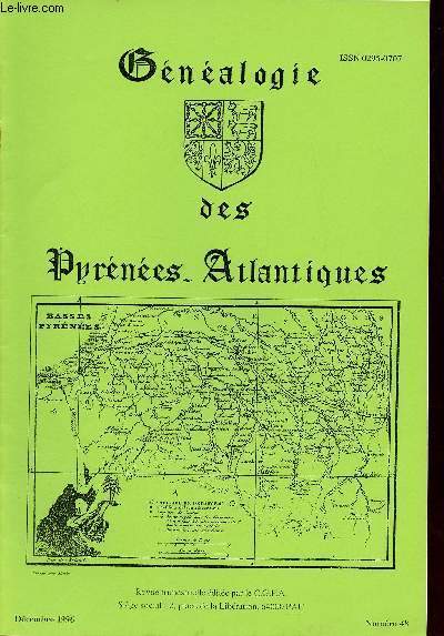 Sommaire : Les ministres protestants de Béarn sous l'ancien régime - liste Girard-Hurabielle - gens du Comminges et Pays voisins partis à Bayonne et au Pays Basque (suite) - inventaire après décès à Barcus en 1766 - commissions de préposés aux douanes St Etienne de - au hasard de l'état civil des Pyrénées Atlantiques. Classification Dewey : 929-Généalogie