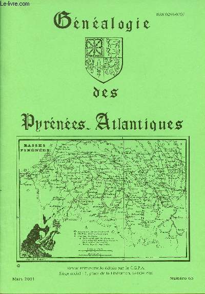 Sommaire : Nouvelles la série J (suite) - au hasard de l'état civil des Pyrénées Atlantiques Anglet - liste Lacoste Abadie (suite) - le baron de Lahontan 1666-1716 suite - exploration d'un nom béarnais - les Peyroutet et leurs conjoints en Béarn - descendance d'Arnaud Baradat. Classification Dewey : 929-Généalogie