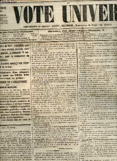 Imprimerie de C.H.Lambert. 1854. In-Folio. En feuillets. Etat d'usage, Livré sans Couverture, Dos satisfaisant, Intérieur acceptable. 4 pages en feuillets - textes sur quatre colonnes - livré sans couverture - timbre national sur la première page .. . . . Classification Dewey : 70.1-Journaux