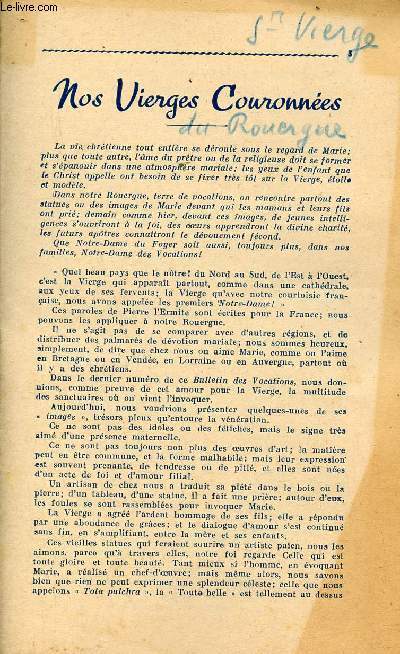 Notre-Dame de Ceignac - Notre-Dame la Negrette - Notre-Dame des Buis - Notre-Dame de Fontcourrieu - Notre-Dame de la miséricorde à Saint-Affrique - ceux qui assurent la relève - les gloires du clergé Aveyronnais - Jean Cardinal Verdier Aveyronnais - que ces lignes aillent loin loin par Pierre l'Emite - zélatrices de vocations - journées de prières pour les vocations - la générosité de nos paroisses rurales pourquoi se fait-on religieuse ? - nos fêtes sacerdotales. Classification Dewey : 230-Christianisme. Théologie chrétienne