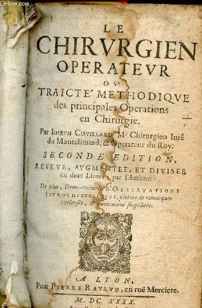 Pierre Ravaud. 1639-1640. In-12. Broché. Etat d'usage, Tâchée, Dos satisfaisant, Rousseurs. 256 + 122 pages - papier jauni - rousseurs à l'intérieur de l'ouvrage sans réelle conséquence sur la lecture - traces de mouillures à l'intérieur de l'ouvrage sans conséquence sur la lecture - couverture tâchée.. . . . Classification Dewey : 610-Sciences médicales. Médecine