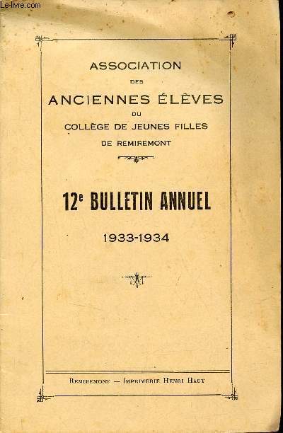 Imprimerie Henri Haut. 1934. In-8. Broché. Etat d'usage, Couv. légèrement passée, Dos satisfaisant, Intérieur acceptable. 17 pages agrafées - rousseurs sur les plats.. . . . Classification Dewey : 370-Education