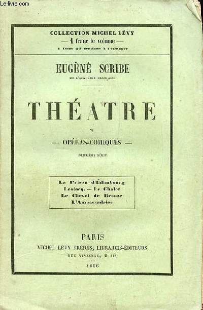 Michel Lévy Frères. 1856. In-12. Broché. Etat d'usage, Couv. légèrement passée, Coiffe en pied abîmée, Quelques rousseurs. 352 pages - rousseurs sur les plats - coiffes abîmées.. . . . Classification Dewey : 792-Théâtre