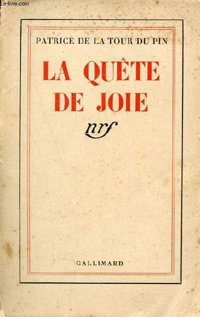 Gallimard. 1942. In-12. Broché. Etat passable, Plats abîmés, Dos abîmé, Papier jauni. 108 pages - papier jauni - plats désolidarisés - rousseurs sur les plats - dos absent.. . . . Classification Dewey : 841-Poésie