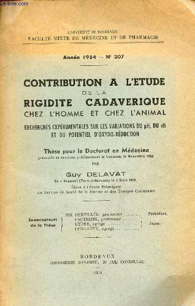 Imprimerie Delbrel. 1954. In-8. Broché. Etat d'usage, Couv. partiel. décollorée, Coiffe en tête abîmée, Papier jauni. 58 pages.. . . . Classification Dewey : 610-Sciences médicales. Médecine