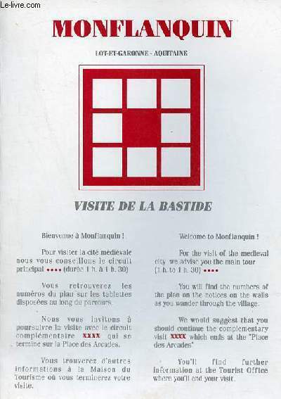 Imprimerie Lapie. 1993. In-8. En feuillets. Bon état, Couv. convenable, Dos satisfaisant, Intérieur frais. Plaquette de 4 pages - plaquette en français et en anglais - plaquette augmentée d'un plan en couleur.. . . . Classification Dewey : 908.447-Régionalisme : Aquitaine