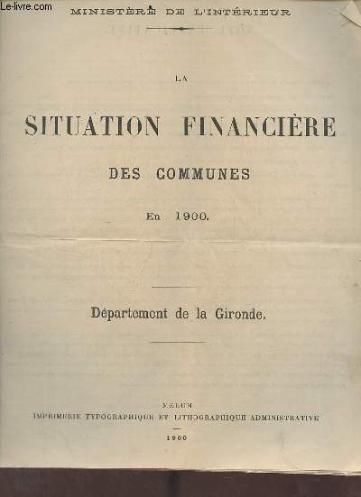 Imprimerie typographique et lithographique administrative. 1900. In-4. Broché. Etat d'usage, Livré sans Couverture, Dos satisfaisant, Intérieur acceptable. 10 pages - livré sans couverture - petites rognures en tête de page sans conséquence sur la lecture.. . . . Classification Dewey : 908.447-Régionalisme : Aquitaine