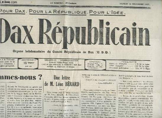 Imprimerie E.Larrat. 1937. In-Plano. En feuillets. Etat d'usage, Couv. convenable, Dos satisfaisant, Quelques rousseurs. 4 pages.. . . . Classification Dewey : 70.1-Journaux
