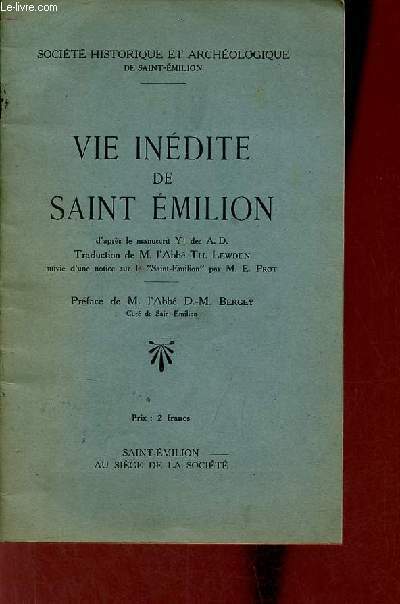 Traduction de M.l'Abbé Th.Lewden suivie d'une notice sur le Saint Emilion par M.E.Prot - Préface de M.l'Abbé D.M.Bergey. Classification Dewey : 908.447-Régionalisme : Aquitaine