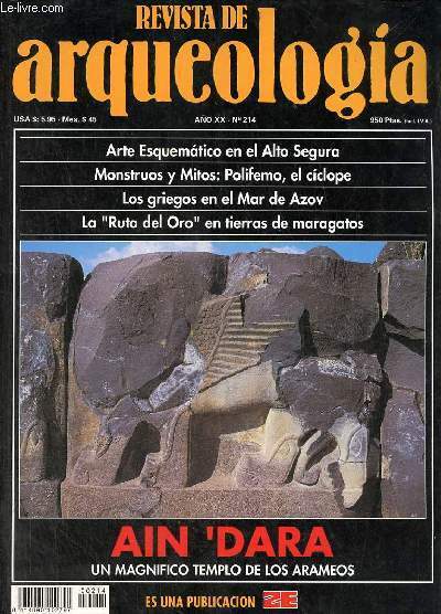 Magazine en espagnol - Sommaire : La Columna Menorquina - Arte esquematico en el alto segura los abrigos I y II de La Tinada del Ciervo (Nerpio, Albacete) - monstruos y mitos : Polifemo el ciclope - Ain' dara, un magnifico templo de los arameos - los griegos en el Mar de Azov - la Ruta del Oro : explotaciones auriferas romanas en tierras de maragatos. Classification Dewey : 460-Langues espagnole et portugaise