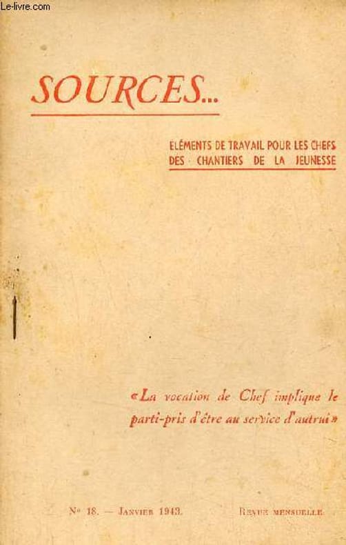 Sommaire : R.Perrin ancien ingénieur du corps des mines, chargé de mission auprès du Maréchal : Essai sur la doctrine de l'organisation professionnelle - un exemple vivant de communauté professionnelle : la pêche maritime méditerranéenne par Y.Régis - expériences et réflexions d'un chef d'équipe - la civilisation franque en Syrie (2e partie) par Professeur J.Lassus - les revues du mois par Chef Pince - revue des journaux de groupements par Chef Kinder - nouvelles des chantiers - activités dans les a.d.a.c. - moyens de connaissance des jeunes : la presse des mouvements spécialisés - bibliographie. Classification Dewey : 70.49-Presse illustrée, magazines, revues