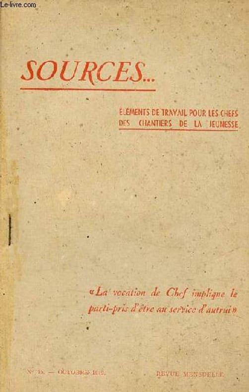 SOURCES. 1942. In-8. Broché. Etat d'usage, Couv. convenable, Dos satisfaisant, Papier jauni. 88 pages agraffées.. . . . Classification Dewey : 300-SCIENCES SOCIALES