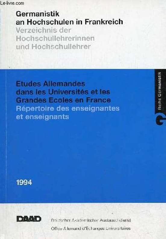Daad Deutscher Akademischer Austauschdienst / Office Allemand d'Echanges Universitaires. 1994. In-8. Broché. Bon état, Couv. convenable, Dos satisfaisant, Intérieur frais. 231 pages.. . . . Classification Dewey : 370-Education