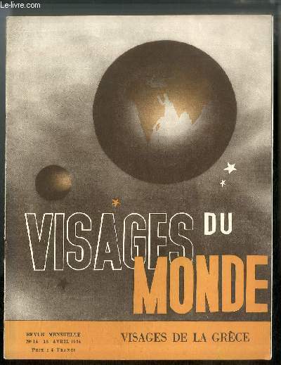 Sommaire : Visages de la Grèce - L'amitié d'Athènes par André Fraigneau, Alchimie des Temples grecs par Gaston Baissette, Paques en Arcadie par Maurice Parturier, Corfou par Georges Pillement, Les Iles grecques par Henri Philippon, Le Cap Sunnium et le paysage grec par Lionello Fiumi Classification Dewey : 70.49-Presse illustrée, magazines, revues
