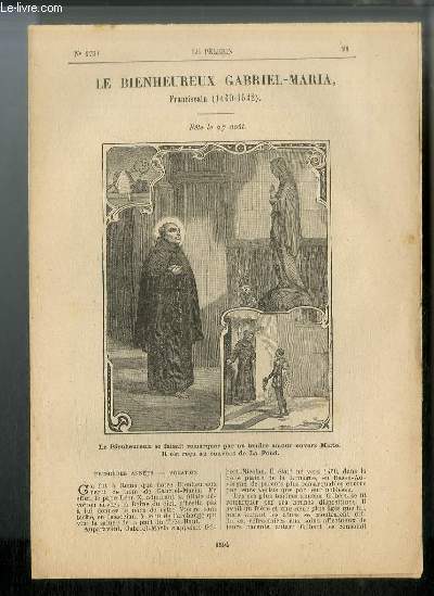 Bureau du journal. Non daté. In-12. Broché. Bon état, Couv. convenable, Dos satisfaisant, Intérieur frais. 4 pages illustrées d'une gravure en première page.. . . . Classification Dewey : 235-Les saints