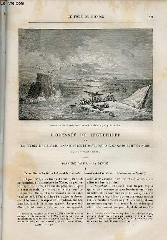 La dérive, illustré d'une carte de la mer de la nouvelle zemble , de gravures : efforts pour briser la glace,le crépuscule en novembre,le spectre blanc,une pression des glaces.Gravure pleine page du Léviathan. Premières excursions à la Terre François Joseph,illustré de gravures dont une de l'escalade des hummocks.Le crépuscule de décembre,illustré d'une gravure :croquis du navire pris à la lueur des torches. aurores boréales-mort du mécanicien KrischExcursions en traineaux-sous l'île Wilczek-ascension du cap Tegetthoff-fiords et glaciers,illustré d'une gravure représentant les costumes de voyage.L'enterrement du mécanicien Krisch,gravure pleine page. Le glacier de Middendorf-Klotz hors de service-du cap des Pingouins au cap Fligely,illustré d'une gravure d'une chute de traineau (le lieutenant Payer coupe la sangle). Le Cap tyrol-arrivée au cap francfort-,illustré d'une gravure du Cap Fligely. Flore et faune de la Terre François Joseph. Le retour,illustré d'une carte dans le texte de la Terre de l'empereur François Joseph et d'une gravure représentant l'abandon du Tegetthoff, une autre gravure sur le remorquage des chaloupes à travers le pack, gravure pleine page du lieutenant Payer.Travail de Sisyphe, mort de Pekel-signes de débâcle. idée lumineuse du Tyrolien Klotz-aventure du docteur Kepes,illustré d'une gravure sur l'aventure de Kepès. en route pour al Nouvelle Zemble - le cap Nassau et le brouillard-le cap Britwin, illustré d'une gravure : dans l'entre-pont du Nicolas. Classification Dewey : 70.4412-Le journal des voyages