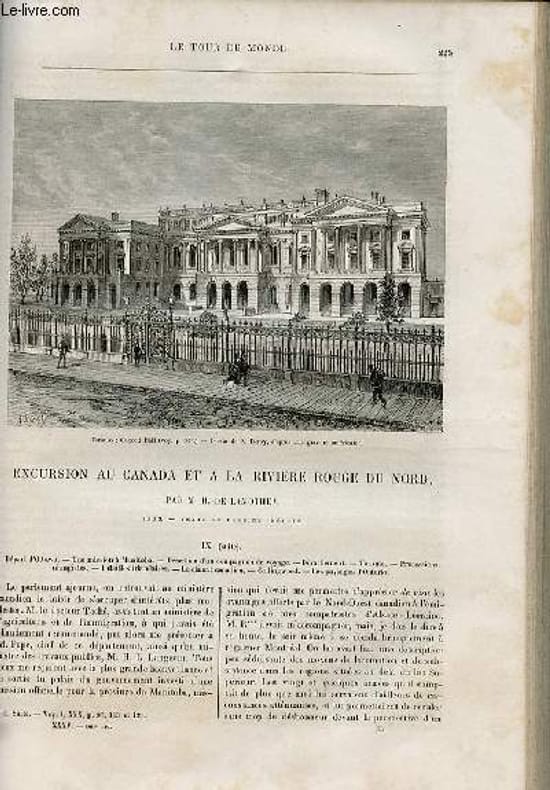Départ d'Ottawa-une mission à Manitoba - Toronto - Collingwood,illustré de gravures: université de Toronto, indiens Chippewas réparant leurs canots,la rivière nipigon. Dela baie du tonerre au lac Pluie-la route Dawson-le lac Shebandowan,illustré de gravures: les bords de la Kaministiquia. Séjour à Kashabowie-lac des Mille-lacs- la hauteur des terres et la frontière d'Ontario-la rivière Maligne,illustré d'une gravure de portage d'un canot,d'une autre d'indiens Chippewas, et une autre de la Comission des frontières.Carte du lac supérieur à la rivière Rouge par la route des canots (hors texte). Winnipeg-Saint Boniface-visite à Saint norbert-Lousi Riel,illustré d'une carte hors texte de l'état de Manitoba,d'une gravure d'une maison de traitant et une autre d'un trappeur canadien. Le Métis-le combat des Sept chênes-les Français à Winnipeg-le désert,la prairie,la forêt,illustré d'une gravure de la Rivière Rouge pendant les hautes eaux et le Désert du Nord Ouest. Chez Joseph Turenne-Reil est élu - au presbytère de St Norbert,illustré d'une gravure d'un attelage: stage ou dilligence des Prairies. Classification Dewey : 70.4412-Le journal des voyages