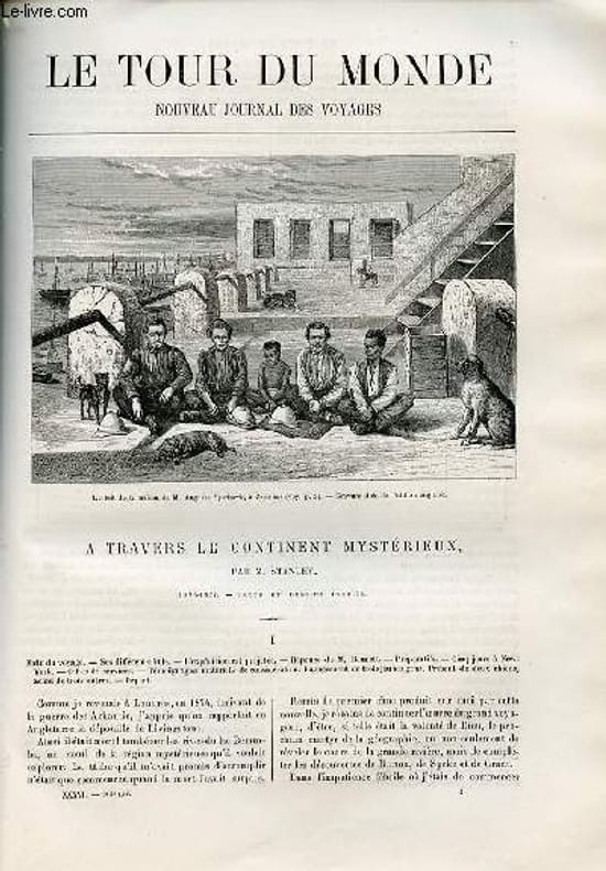 Préparatifs-Cinq jours à New York,illustré d'une carte de Zanzibar à l'Itourou. Le prince Bargash - Mélinndi-Vouangouana-obscurité et rayons illustré de gravures dans le texte et d'une pleine page d'un coucher de soleil vu de Zanzibar. tarya Topan-Bagamoyo-traversée du Kinngani-mort de Castor-bassin de Kitannghé-Myommbo-mort et funérailles d'Edouard Pocock,illustré de portraits de Stanley (à l'époque de son départ et de son retour),taryan Topan, de gravures dont une du camp au Mpouapoua. Premières sources du Nil du côté sud-entrée dans l'Itourou-meutre de Kaïf Haleck-vue du lac Victoria-Kaghéyi,illustré d'une gravure d'Edouard et Franck Pocock et Frédérick Barker, d'une autre gravure du portage du canot Lady Alice et une de l'équipage de ce canot. Embouchure du Chimyou-Oukéréhoué-Oughéyéya-réception du Katékiro,illustré d'une carte hors texte de l'Itourou à l'Ougannda et du pourtour du lac Victoria. Mtésa-M. Linant de Bellefond, sa mort, illustré de gravure sdont une de Mtésa et ses principaux dignitaires; la capitale de Mtésa. baie de Murchison-d'Oussavara à Doumo - Makonngo-île d'Alice-,illustré de gravures: départ du Lady alice,Manoua Serra,1er capitaine et Oulédi le sauveteur. Déclaration de guerre de Mtésa aux Vouavouma - aux chutes Ripon-Ile d'Innghira,forteresse de l'ennemi. Gravure pleine page de l'incendie du camp, de Maoor Ougonngou,jurant d'avaler Niamondjou et sa terre. La Katonnga-Sammbouzi-,illustré d'une carte de la route de Stanley d'Oulagalla au mouta Nzighé et du mouta à Mséné, de gravures: à travers l'Ounyoro;eaux chaudes de Mtagata; homme de Mirammbo, l'un des Vouatouta,homme de l'Ouhha. Mort de Bull-Oussammbiro-Sérommbo-Mirammbo,illustré de gravures dansle texte de la maison et le trésor de roumanika.Passage du Malagarazi-arrivée au tanganika-port d'Oudjidji illustré de gravures: cascade de la Kessouma,monts Mtommboua,Katéyé et Kapemmboua. Ouvinnza -Bassin d'Ouhommbo -Ka-Bammbaré - vallée de la Louama - vue du Loualaba,illustré de gravures: conseil tenu dans la cour de notre tembé à Ougoy (Oudjidji), réception à Ka-Bammbaré,village du Manyéma,naturels du Manyéma. Le Livingstone-Oulédi-Rouiki-Vinya-Ndjara-rupture de l'engagement de Tipou-Tib,illustré de gravures d'un campement chez les cannibales,sauvetage de Zaïdi,grand canot de l'Arouhouimi. Le roi de Tchoumbiri-le chaudron-,illustré de gravures: trainage dans la forêt, carte du cours de Livingstone (Congo) par Henri Stanley, mort de Kaloulou, le Lady Alice, ouverture d'un chemin dans la forêt,trainage des canots aux chutes d'inkissi (en aval du Nkennké). Nzabi-Bolo-Bolo- cascade de l'edwin Arnold - les pêcheurs de la Mata - Arrivée à emmboma et à Kabinnda illustré d'une carte du cours de Livingstone de Nzabi à la mer, d'une gravure de la mort de Frank Pocock, d'une autre gravure de l'expédition à Kabinnda. Classification Dewey : 70.4412-Le journal des voyages