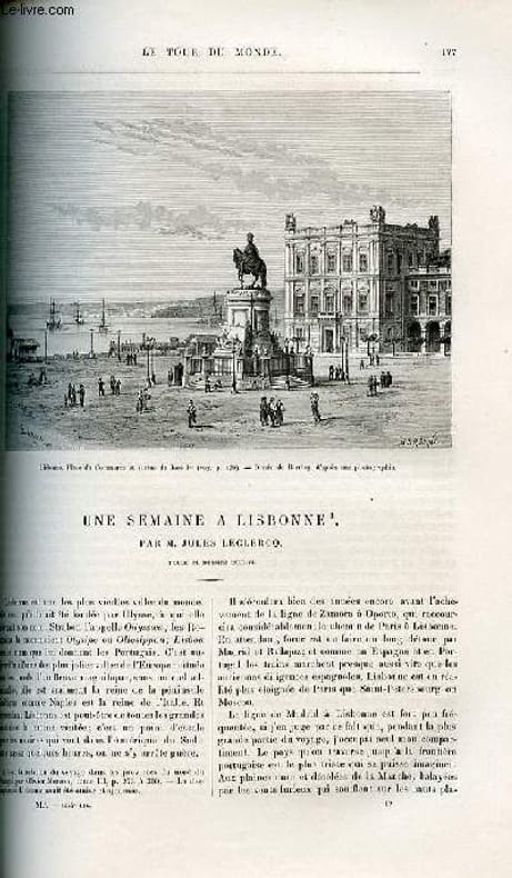 Illustré de gravures dans le texte de Lisbonne: place du commerce et statue de José Premier, carte des environs de Lisbonne,casa dos bicos (maison des pointes), basilique de l'Estrella (l'étoile) oude Coraçao de jesus ,statue de Camoëns,arc de triomphe sur la place du Commerce. Gravures pleine page: chapelle royale pontificale de SAint Jean Baptiste à l'église San Roque, le cloître de Belem, marchandes de poissons. Classification Dewey : 70.4412-Le journal des voyages