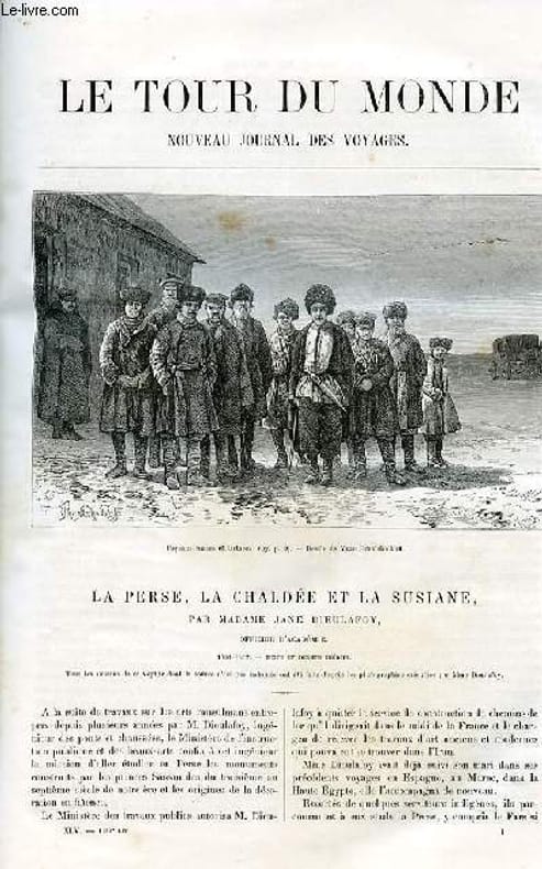 Erivan-entrée au Gastein-enfant arménien-palais des Serdars-vue de l'Ararat-Narchivan- Mastched djouma-Attaba Toumbaz,illustré de gravures:ancienne mosquée à Erivan,pont d'Erivan,. azerbéijan-Kurdes-un des 999 caravansérails de Chah Abbas,illustré de gravures dont: ruines de la Mastched djouma et minaret à Narchivan, carte de Tiflis à Bagdad,Suse et Mohamère,derviche et vieux mendiant à Marande. Les kanots-derviche récitant des poésies héroïques-pont de Tauris--biroun persan. La mosquée bleue-la citadelle-la mort du mouchtéid de Tauris-excursion à la mosquée de Gazan Khan - couvent d'Echmyazin,illustré de gravures dont: vue intérieure de la mosquée bleue à Taurus,forteresse de Taurus,Mouchtéid de Tauris et ses vicaires. Un pélerinage se rendant à Méched dans le Khorassan - Mianeh - légende du château de la Pucelle- Dokhtaré-pol,illustré de gravures dans le texte et d'une gravure pleine page du pont de la Pucelle,une autre gravure d'une jeune fille baby de Zendjan. Sultanieh-tombeau de Chah Khodah Bendeh - tcharvadars,illustré de gravures dont: tombeau de chah Khodah Bendeh à Sultanieh. Maison à Azimabad-arrivée à Kazbin-Ab ambar-le chah Zaddeh de Kazbin-Mastched djouma de Kazbin-mystères d'Houssein-Iman Zaddeh Houssein-arrivée à Téhéran, mystères d'Houssein. Le docteur Tholozan-les filles de Saint Vincent de Paul - palais de Négaristan-andéroun royal-portrait de fattaly Chah et de ses fils-portrait de Nasr ed din Chah,illustré de gravures dans le texte (portraits du docteur Tholozan et du Nasr ed Din Chah) et d'une gravure pleine page d'Anderoun de fattaly Chah. Les neveux du Chah-campagne de Véramine-la Mastched djouma de Véramine-une kaleh (forteresse) sassanide-citadelle de Véramine-tour et mirhab mogols-Iman Zaddeh Djaffary-l'arbre de Tadjrich-Mirza Nizam de gaffary,illustré de gravures dont une de la forteresse de Véramine, une marche à Véramine;le platane de Tadjrich. Classification Dewey : 70.4412-Le journal des voyages