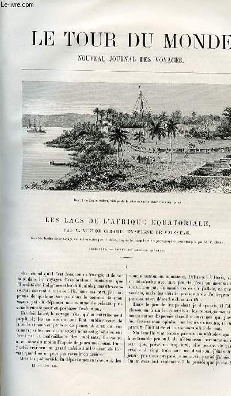 Nombreuses gravures dans le texte: départ de Dar Es Salam, Zanzibariste ferrouji kamna nassib réunis sur uen gravure, village uadoé à Kamruka, vue du Kingani,défilé de troupeaux sur les bords de Kingani,porte du village de Hongo,songoro apportant un courrier d'Europe et un sac de sel, grenier des Vouassagara,passage des ravins, Hassani Bogo le chasseur, indigènes de l'Usasa. Carte dans le texte de l'itinéraire de Giraud de Dar Es Salam au lac Nyassa. Gravures pleine page : vue d'un puri et d'indigènes de l'Ouzaramo, sorcière menée au bucher à Zambué, une nuit d'orage, passage de section d'un canot,indigènes vuahéhé, capitale de l'Uhéhé, arrivée au premier village du COndé. Classification Dewey : 70.4412-Le journal des voyages