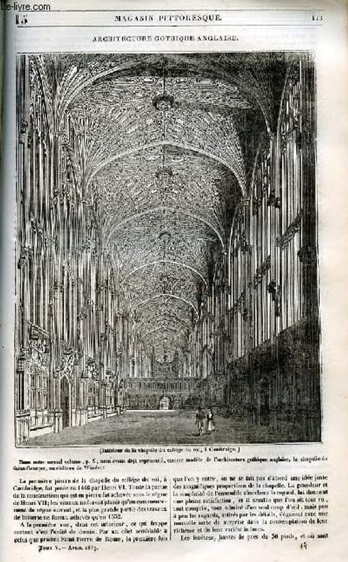Architecture gothique anglaise avec gravure dans le texte de l'intérieur de la chapelle du collège du roi à Cambridge. L'apprenti,suite. Le porc-épic avec gravure dans le texte. Haiti avec carte d'haiti dans le texte et deux gravures dans le texte. Classification Dewey : 70.4414-Le bon journal / Journal pour tous