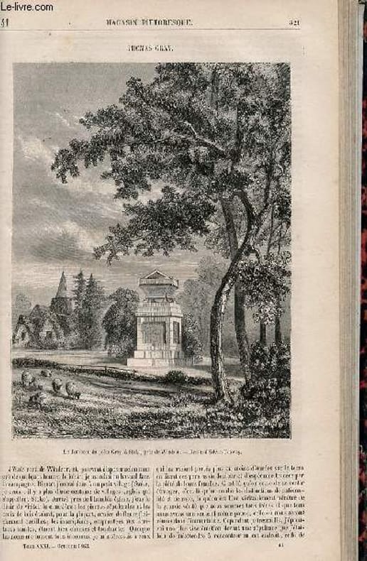 Thomas gray ilustré d'une gravure dans le texte de son tombeau à Stoke près de Windsor. Les trois barbes rouges,conte. Comment le comte de Caylus visita les ruines d'Ehpèse. Chasse aux bisons avec gravure dans el texte du'n troupeau de bisons dans le Missouri. Les signatures au moyen age illustré de deux pages de gravures hors texte de seings (Guillaume Pasquer, Blanc Amofot, Pierre Isarne, Adam Waguet, Hugues de Marzé, etc...). Classification Dewey : 70.4413-Magasin pittoresque, universel et mosaïque