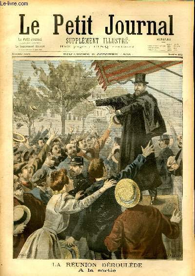 Au bureau du Petit Journal.. 9 octobre 1898. In-12. Broché. Bon état, Couv. convenable, Dos satisfaisant, Intérieur frais. 8 pages illustrées de 2 gravures en couleur en première et quatrième de couverture. . . . Classification Dewey : 70.4411-Le petit journal / Le journal illustré